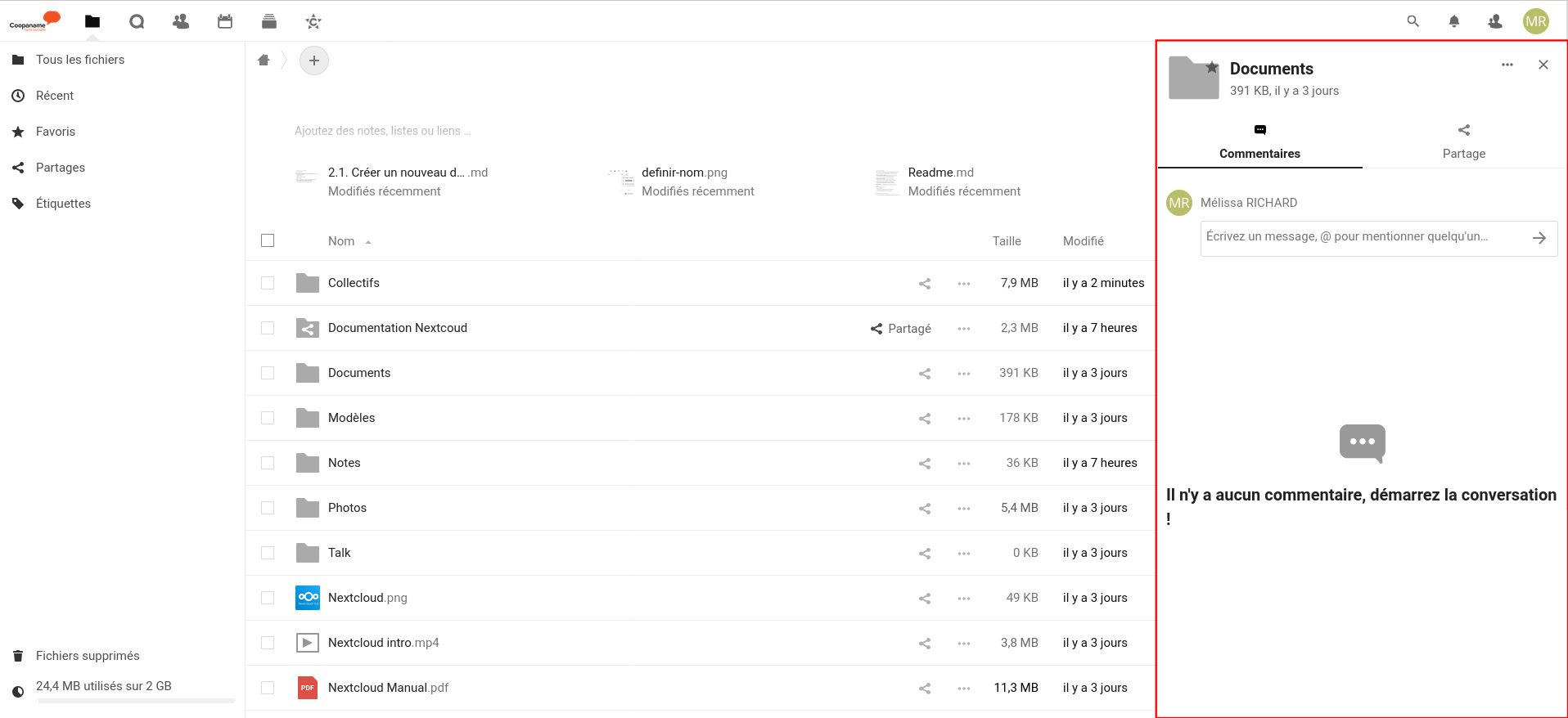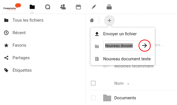 Cliquez sur le nom du nouveau dossier dans la liste pour l'ouvrir.