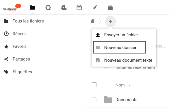 Choisissez "Nouveau dossier" dans le menu déroulant.