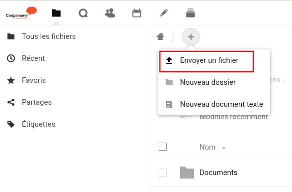 Choisissez "Envoyer un fichier" dans le menu déroulant.
