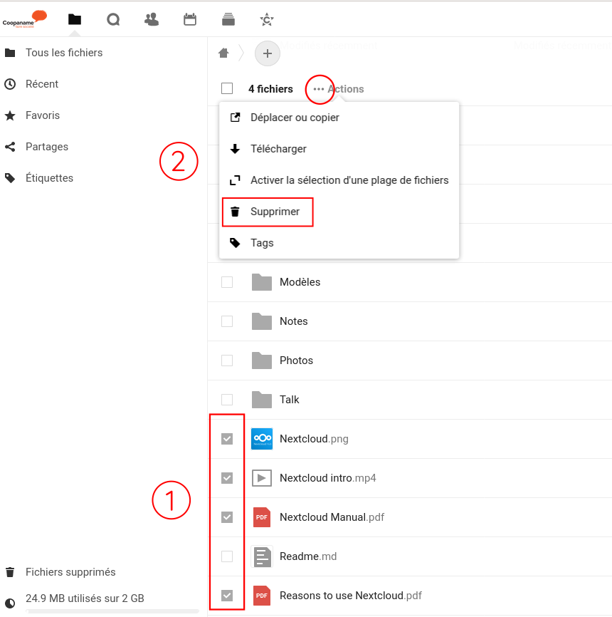 Cochez les fichiers à supprimer dans la liste des dossiers.