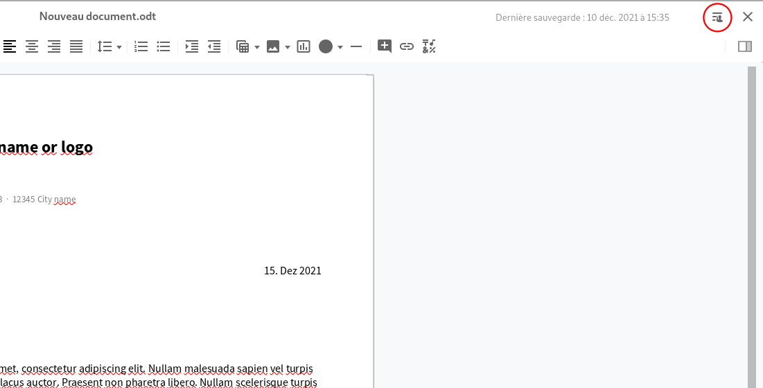 Ouvrez la barre latérale en cliquant sur le menu en haut à droite de l'interface d'édition du document.