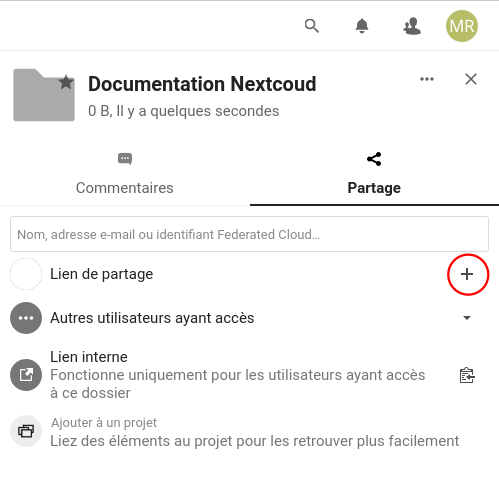 Cliquez sur le bouton + de la ligne "Lien de partage".