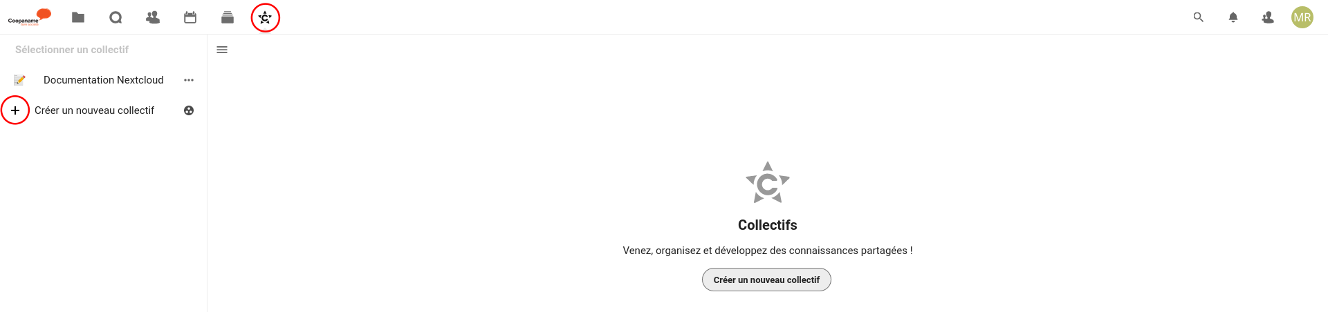 Cliquez sur le module Collectifs dans la barre des modules en haut à gauche.