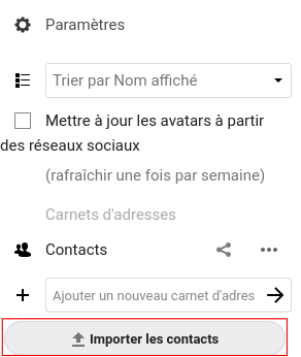 ℹ️ L'import n'est possible qu'avec des fichiers Virtual Contact File (VCF/Vcard) en version 3.0 ou 4.0.