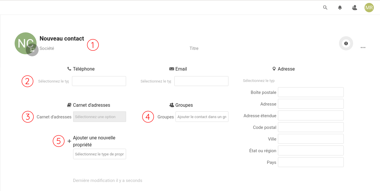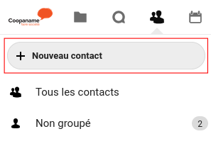 Cliquez sur "Nouveau contact" en haut de la liste des contacts.