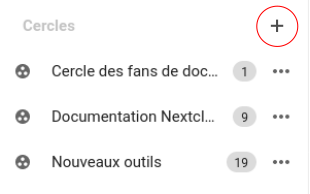 Cliquez sur le bouton + de la section Cercles dans la liste des contacts.