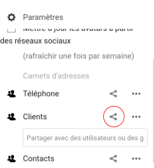 2. Cliquez sur le bouton de partage correspondant au carnet d'adresses que vous voulez partager.