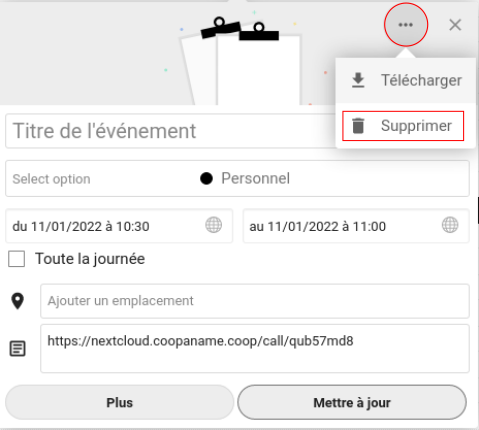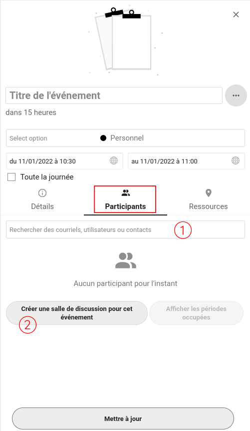 - Envoyer une nouvelle invitation par email à chaque modification de l'événement en cochant la case "Envoyer par courriel".