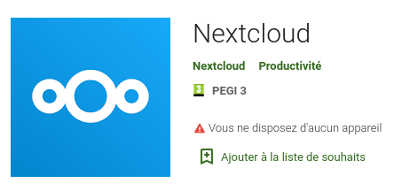 Recherchez l'application "Nextcloud" dans votre magasin habituel d'applications.