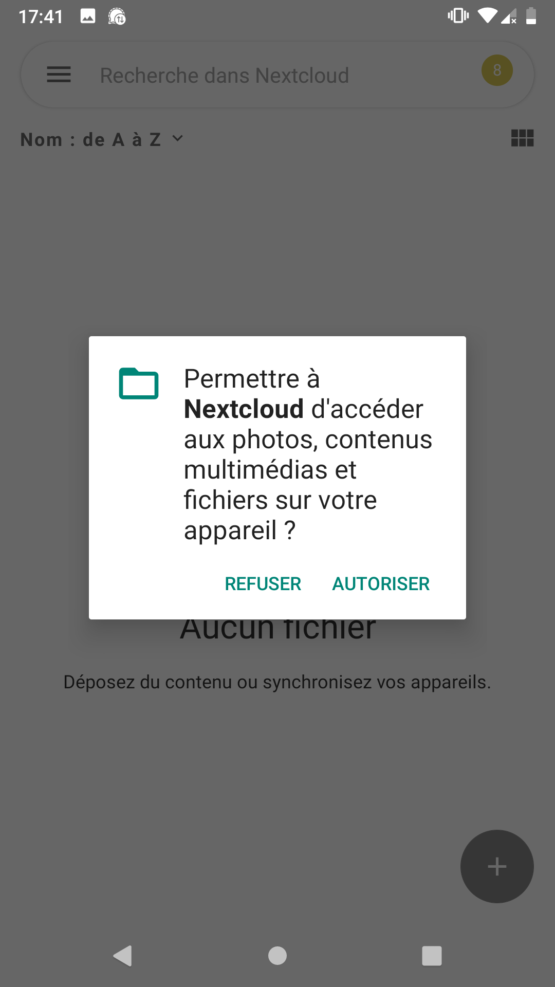 Appuyez sur "Autoriser" dans la boîte de dialogue qui aparaît, pour que l'application puisse bien accéder à vos fichiers sur votre mobile.