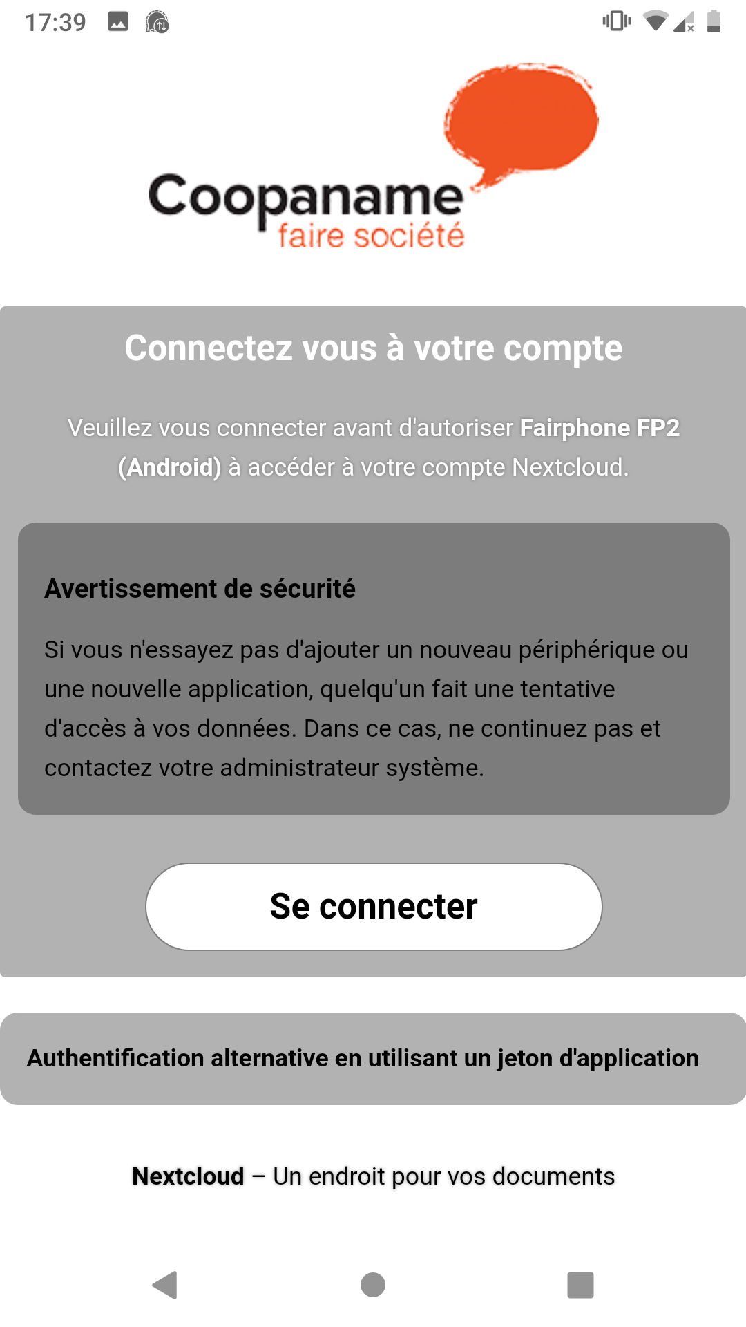 Posez votre téléphone et connectez vous à Nextcloud depuis votre ordinateur.