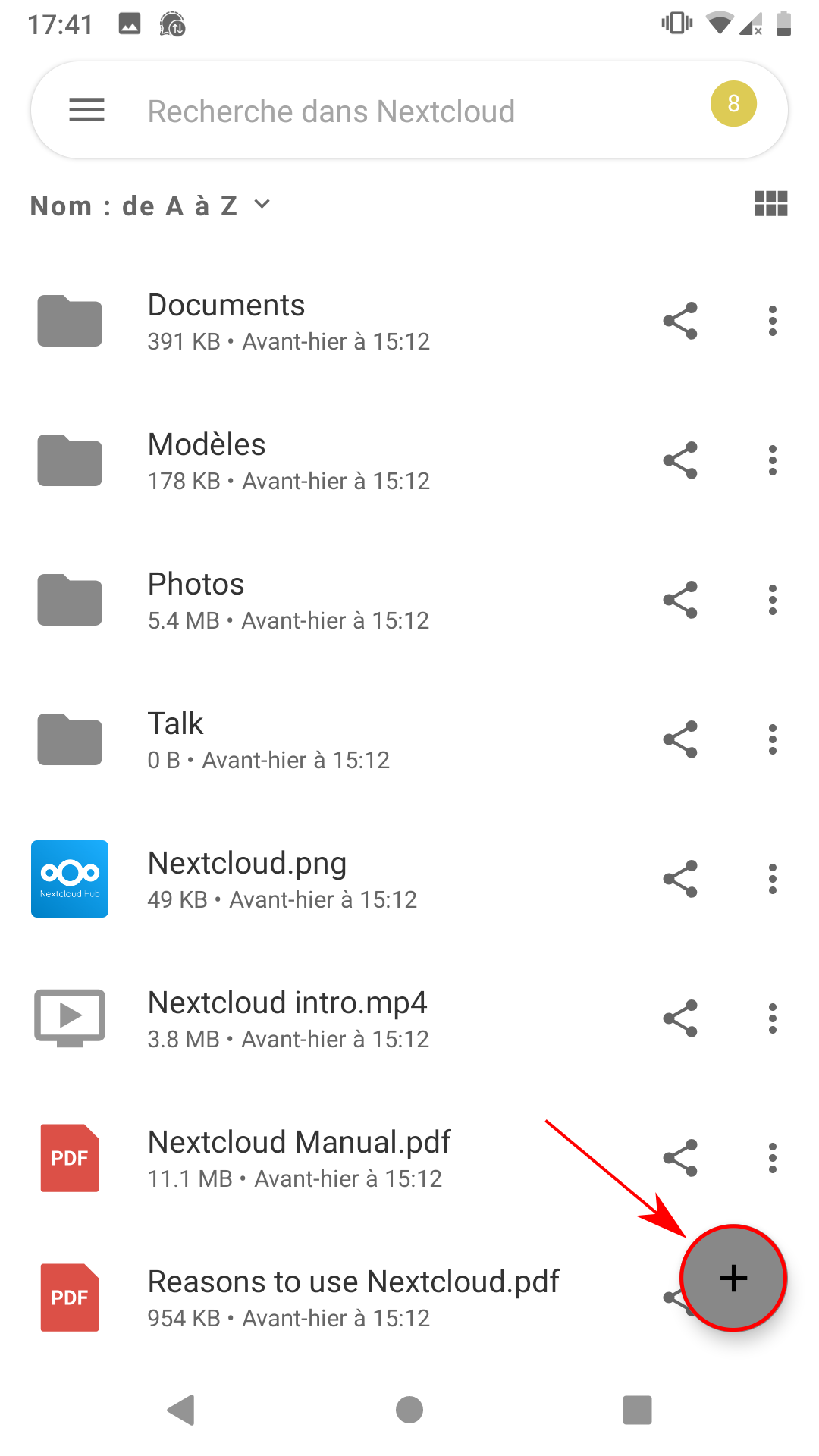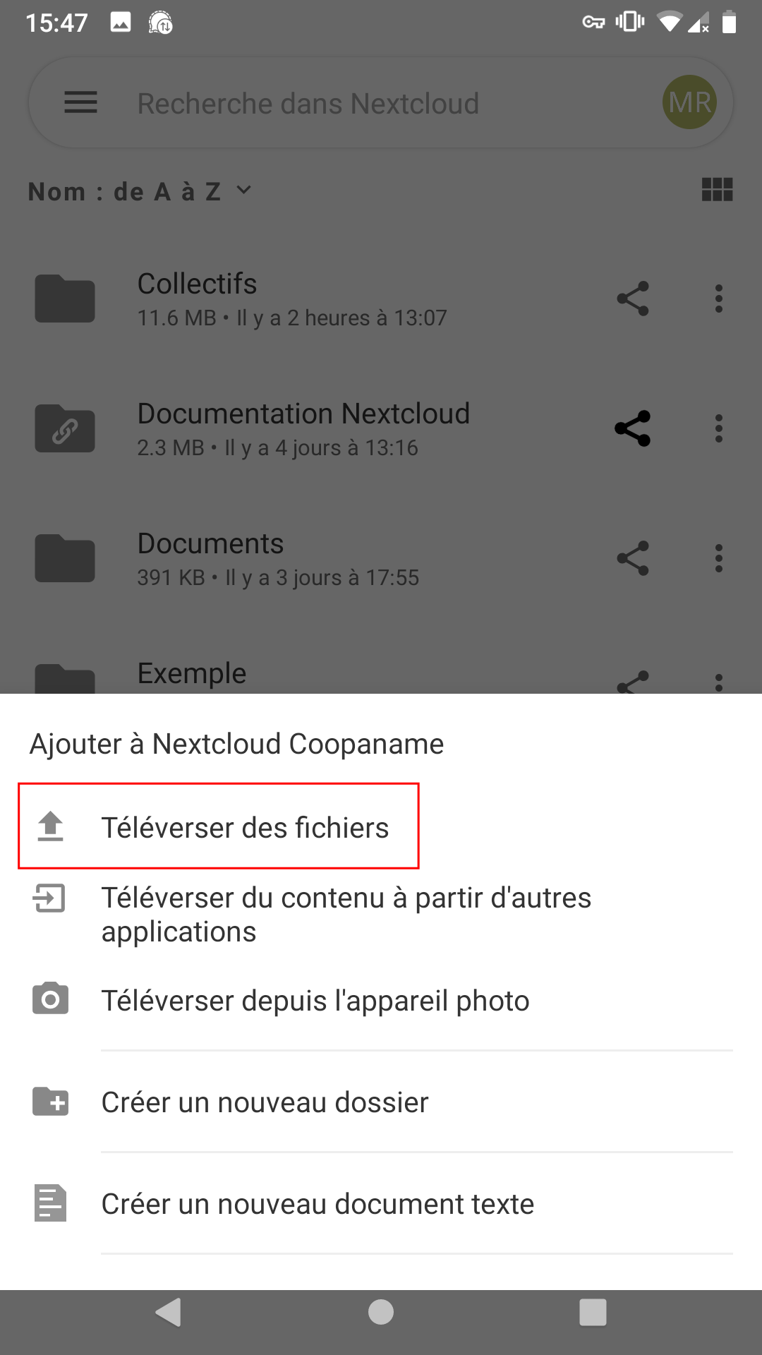 Envoyer un fichier depuis votre téléphone vers Nextcloud