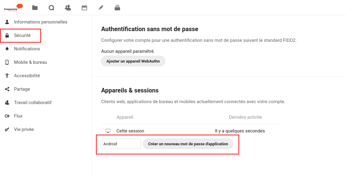 Ajouter un mot de passe d'application