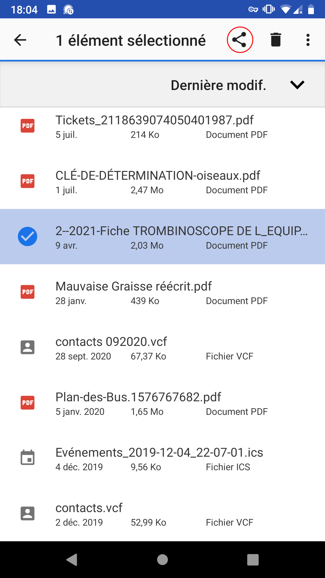 Appuyez sur l'icône de partage de ce fichier.