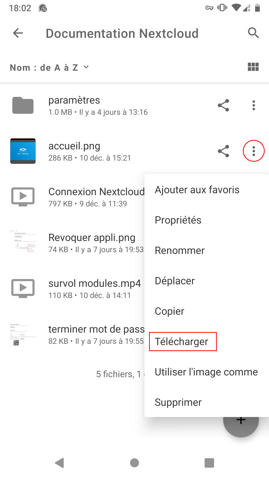 Télécharger un fichier depuis Nextcloud vers votre téléphone