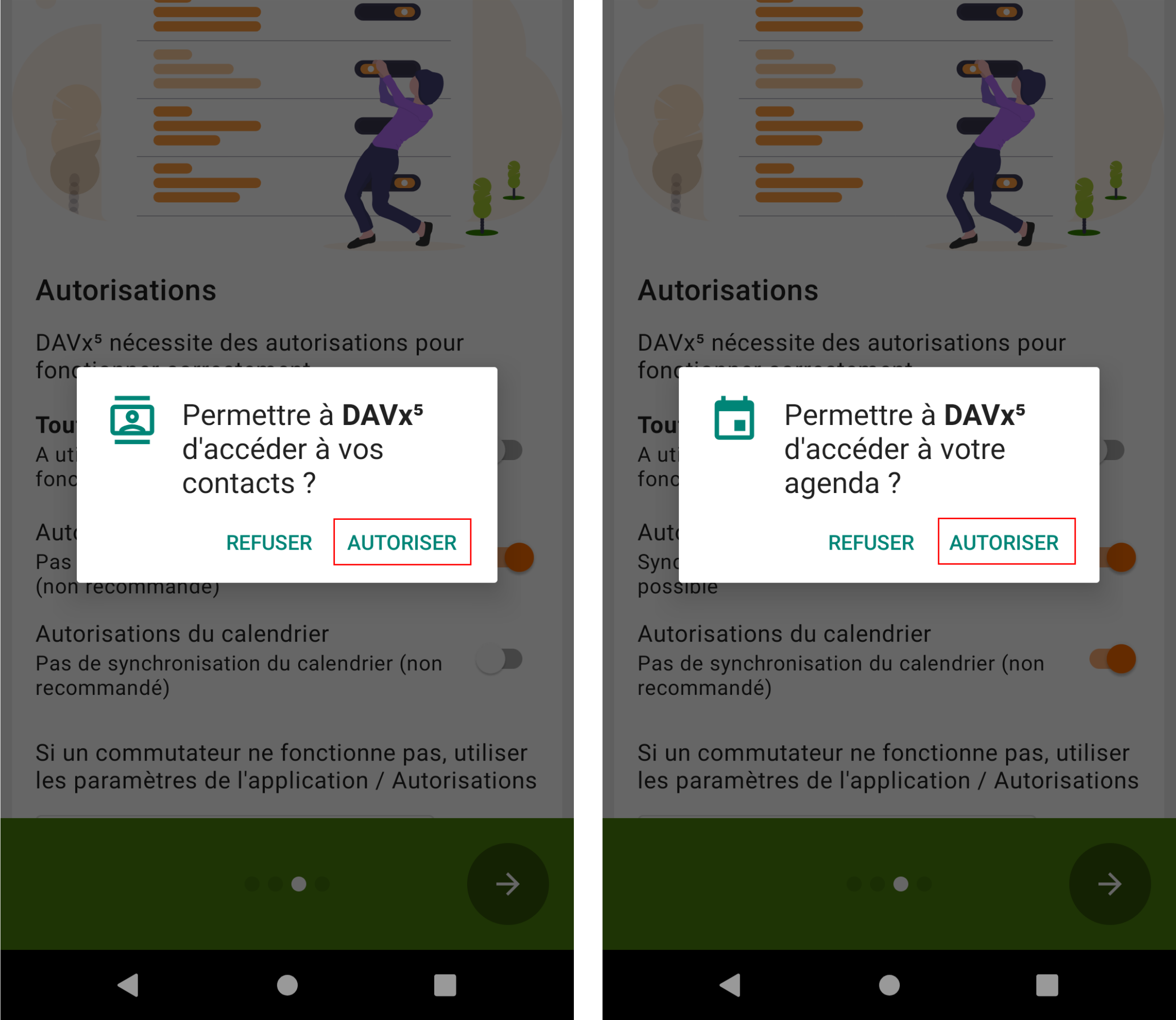 Pour chaque, autorisez l'accès à votre mobile dans la boîte de dialogue qui apparaît.